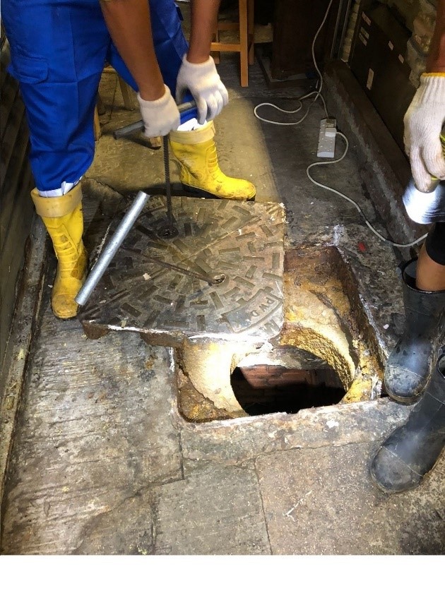 量度沙井以提取數據 | 打開沙井蓋,視察沙井內情況 |